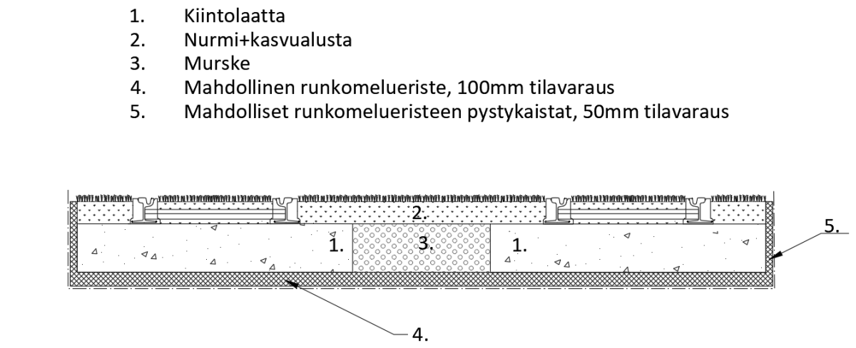 | Rakennustyypit | Runkomelutaso Lprm [dB] |