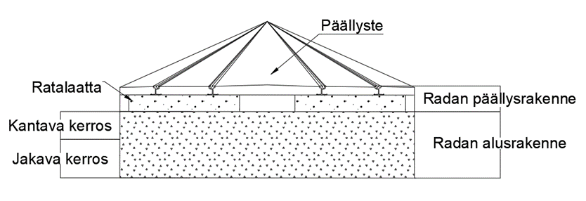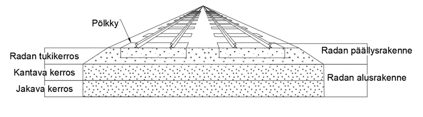 Raitiotien alusrakenne käsittää kantavan ja jakavan kerroksen.