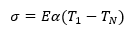 Jossa σ on jännitys, E on kimmomoduuli, α lämpölaajenemisvakio 0,0000115 °C-1, T1tarkastelulämpötila ja TN kiskon neutraalilämpötila. Kiskon tarkastelulämpötila-alue riippuu ratarakenteen tyypistä, sillä avoimessa ratarakenteessa kiskojen lämpötilan vaihteluväli on suoran auringonpaisteen kiskoja lämmittävästä vaikutuksesta johtuen suurempi.