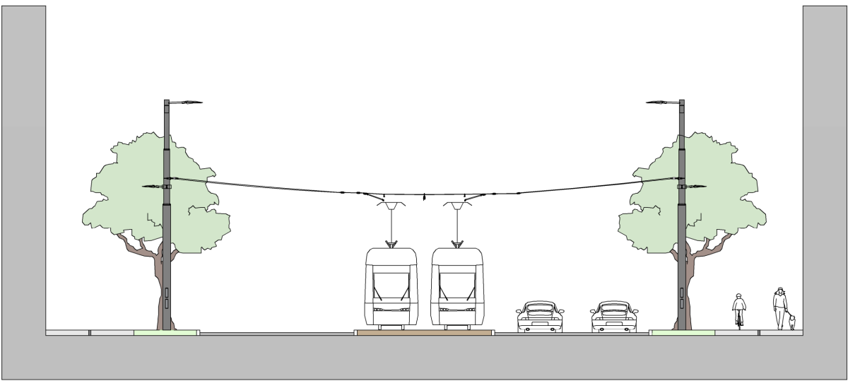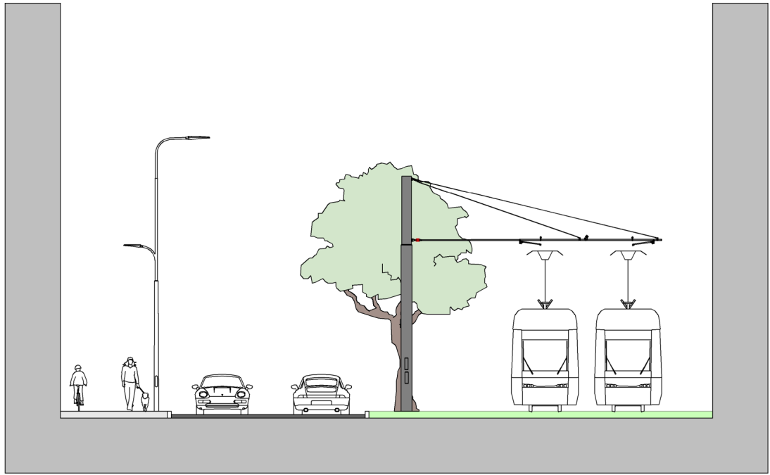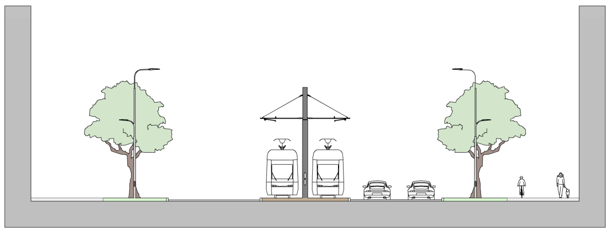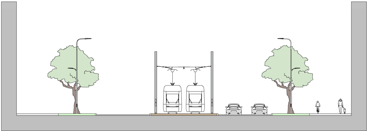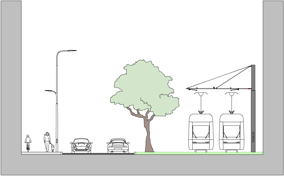 Raitiotie kadun reunassa on erityisen ongelmallinen tiiviissä kaupunkiympäristössä. Raskain liikennemuoto eli raitiotie sijoittuu tällöin lähimmäksi jalankulkua ja pyöräilyä, mikä on ongelmallista suuremmilla nopeuksilla. Kadun reunassa kulkevan raitiotien melu voi myös rajoittaa rakennusten sijoittamista kadun varrelle.