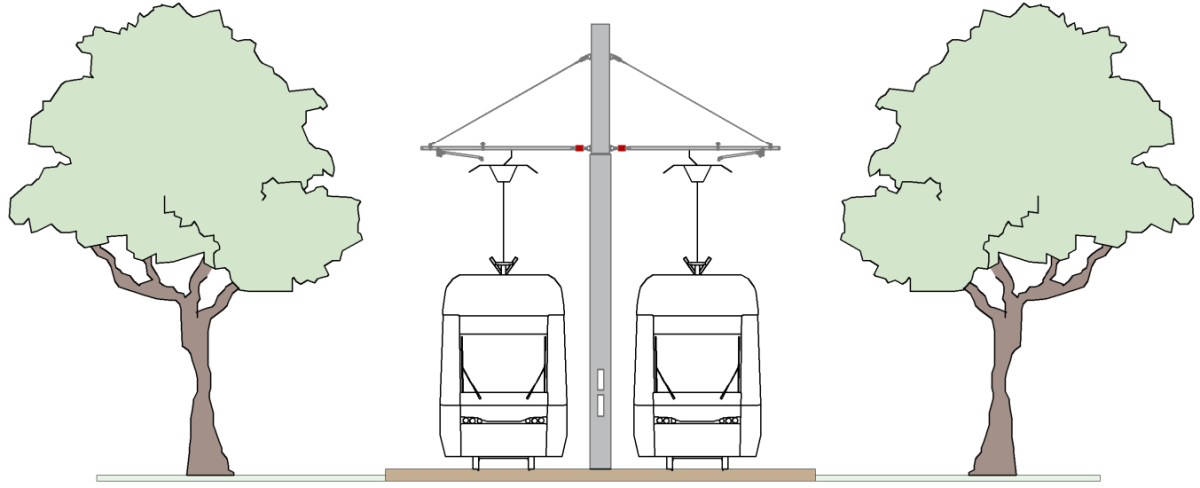 Raitiotien sijoittaminen kadun keskelle on suositeltavin vaihtoehto. Käyttäjän kannalta on selkeintä, että raskain liikennemuoto sijaitsee keskellä katupoikkileikkausta, autoliikenne raitiotien vieressä ja pyöräliikenne ja jalankulkijat kadun reunalla. Järjestely mahdollistaa myös sen, että kadun ylityksissä väistettävät liikennemuodot tulevat loogisesti ensin vasemmalta ja sitten oikealta.