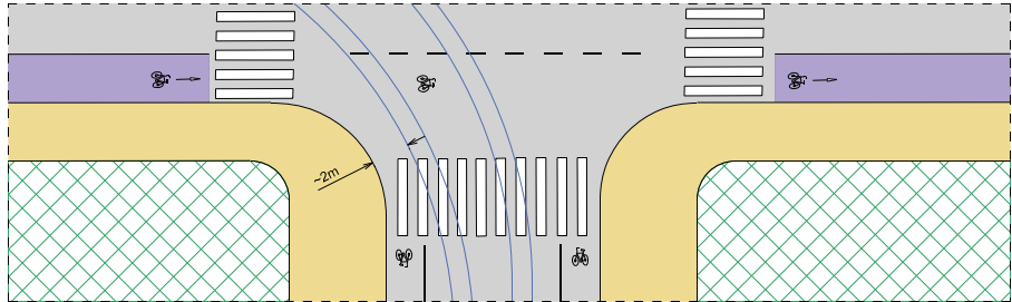 Ylityspaikan porrastus toteutetaan ensisijaisesti reunakivin ja sitä tehostetaan nopeusrajoituksen, näkemien tai muun syyn edellyttäessä kaitein tai muin rakentein.