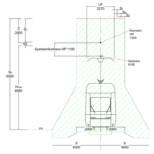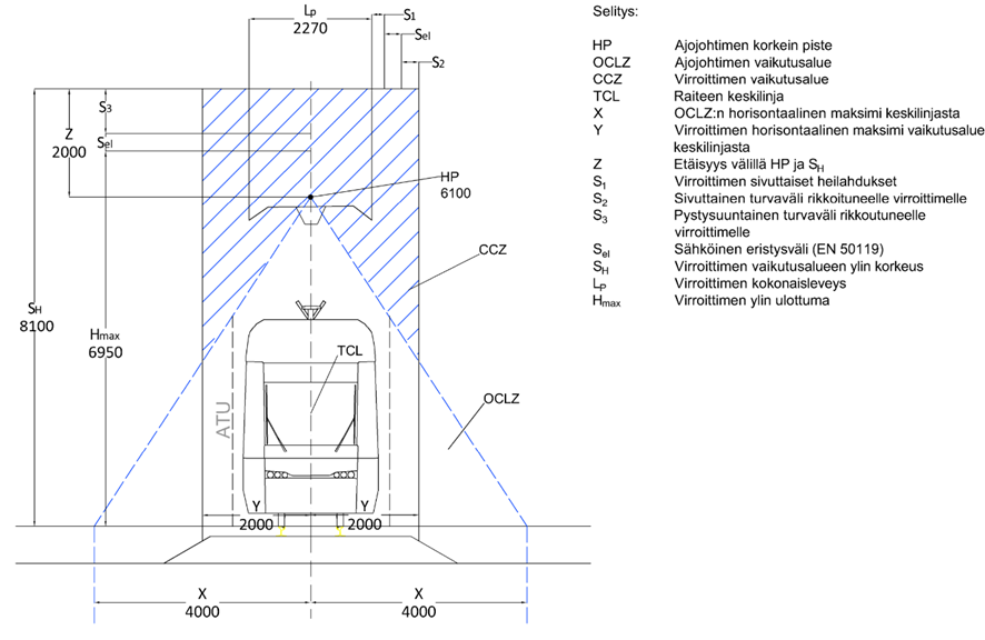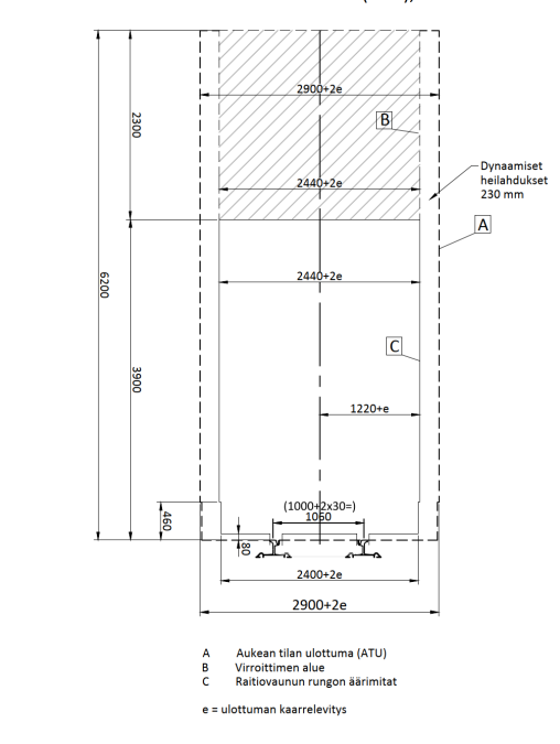 Aukean tilan ulottuma on korkeussuunnassa 6 200 mm kiskon selästä. ATU sisältää vaunun vaatiman tilan 3 900 mm sekä virroittimen vaatiman tilan 2 300 mm.