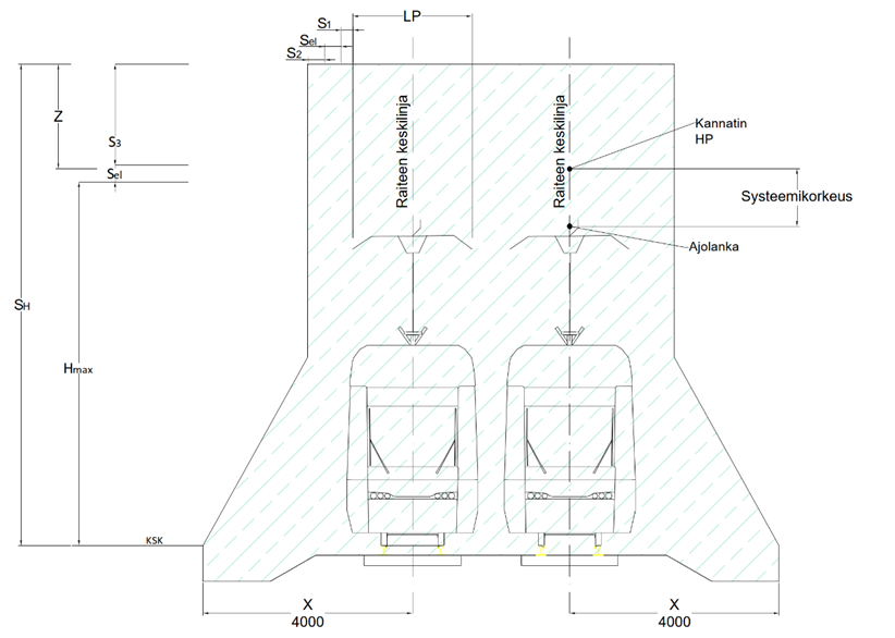 | Ajolangan korkeus [m] | Ajoneuvon sallittu korkeus [m] | Viitteellinen rakenteen vapaa korkeus [m] |