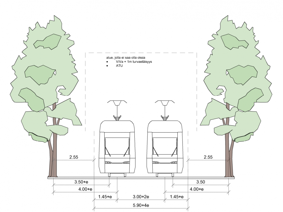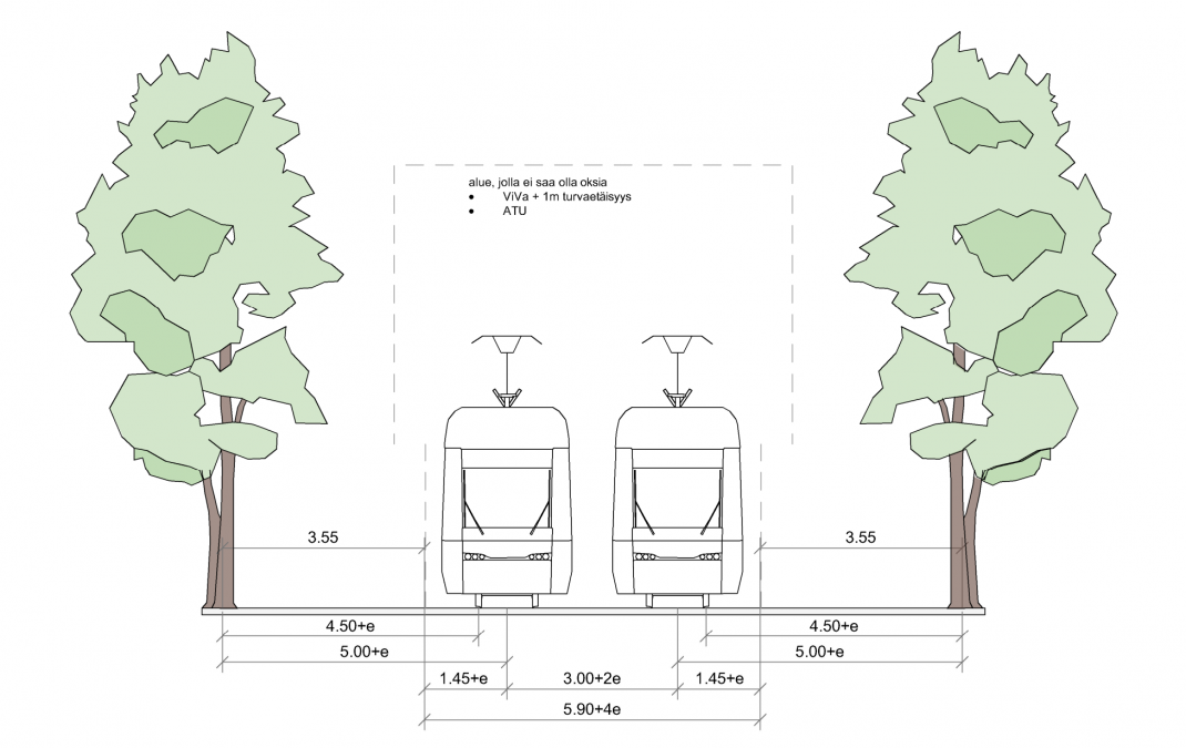 Katupuiden etäisyys ATU:sta vaihtelee puiden koon mukaan. Katupuiden istutusetäisyyden tulee olla vähintään 3,5 metriä raiteen keskilinjasta. Neljän metrin etäisyys raiteen keskilinjasta on suositeltavaa sähköturvallisuuden takaamiseksi.