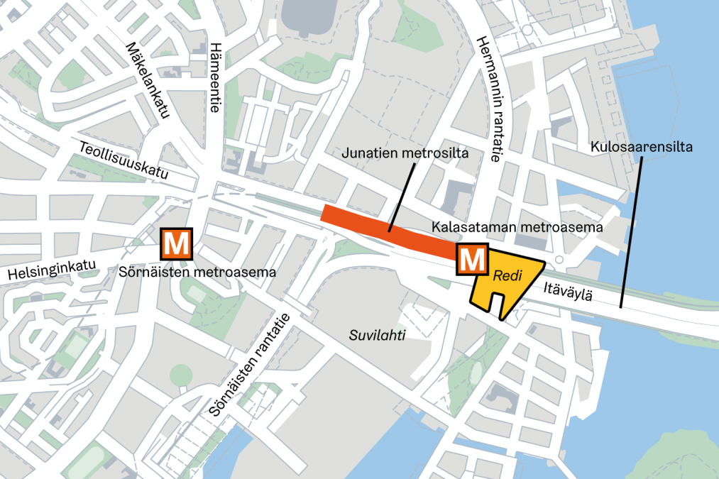 Metrobron mellan Fiskehamnen och Sörnäs förnyas 2026–2028. Enligt uppskattning upphör metrotrafiken år 2027 mellan Brändö och Hagnäs för över ett halvt år. Ytterligare kommer Fiskehamnens metrostation att vara stängd en längre tid.